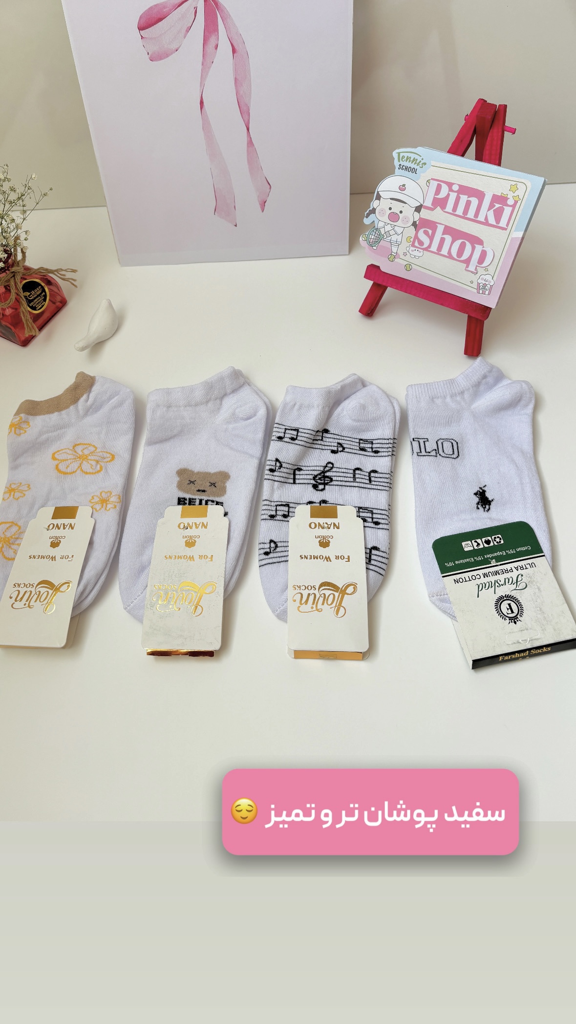 پک ۴ عددی جوراب مچی نخی زنانه و دخترانه رنگ سفید