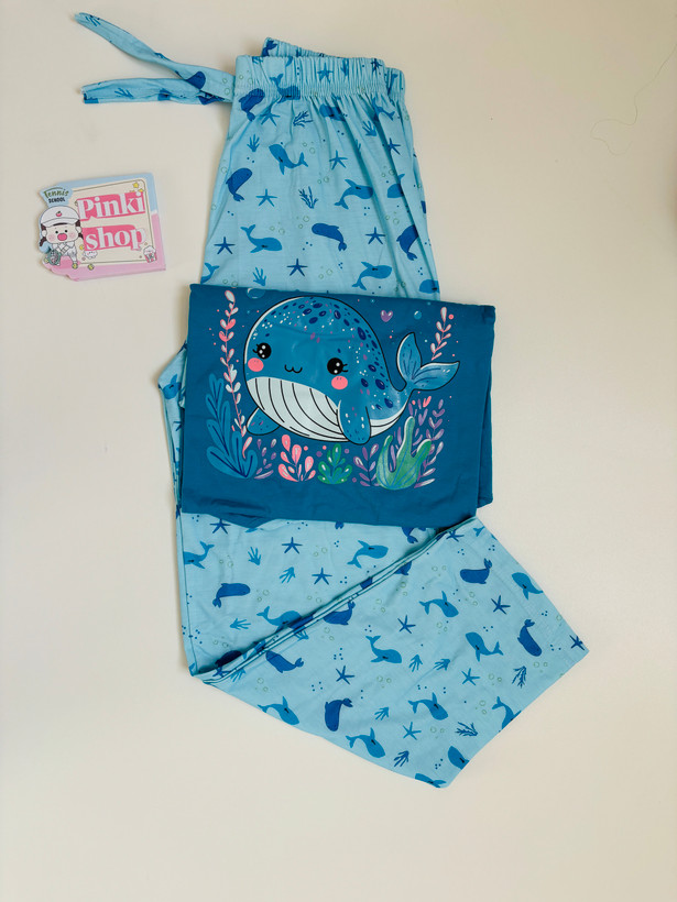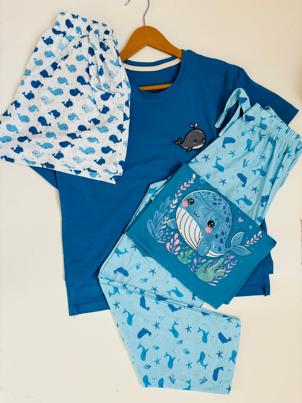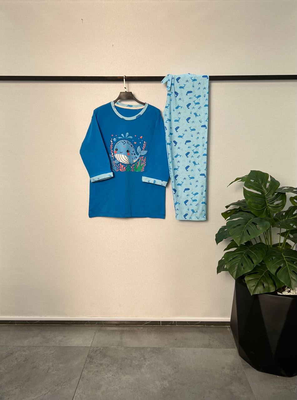 ست چهار تکه نخ پنبه زنانه طرح دلفین و وال🐬🐳