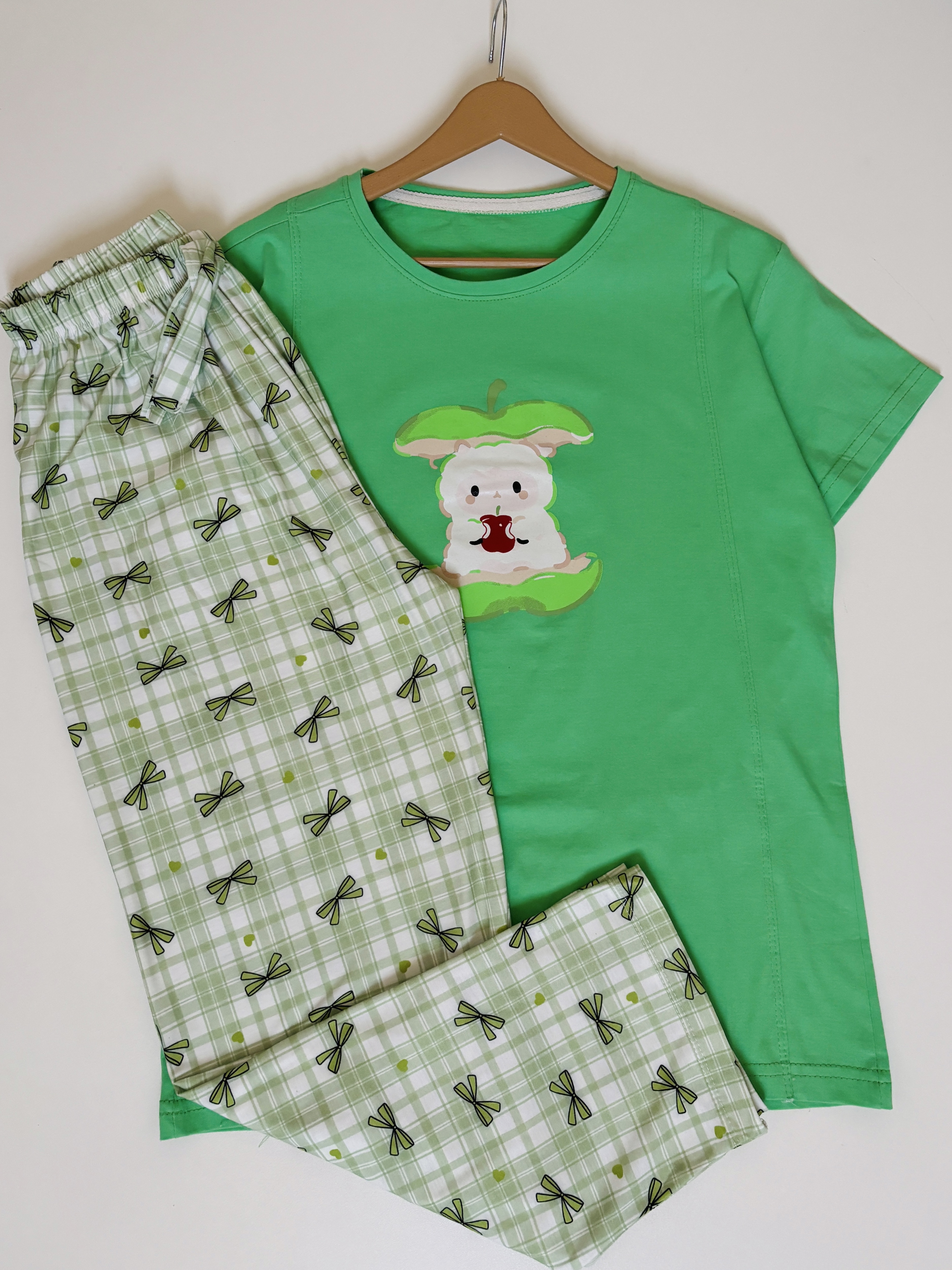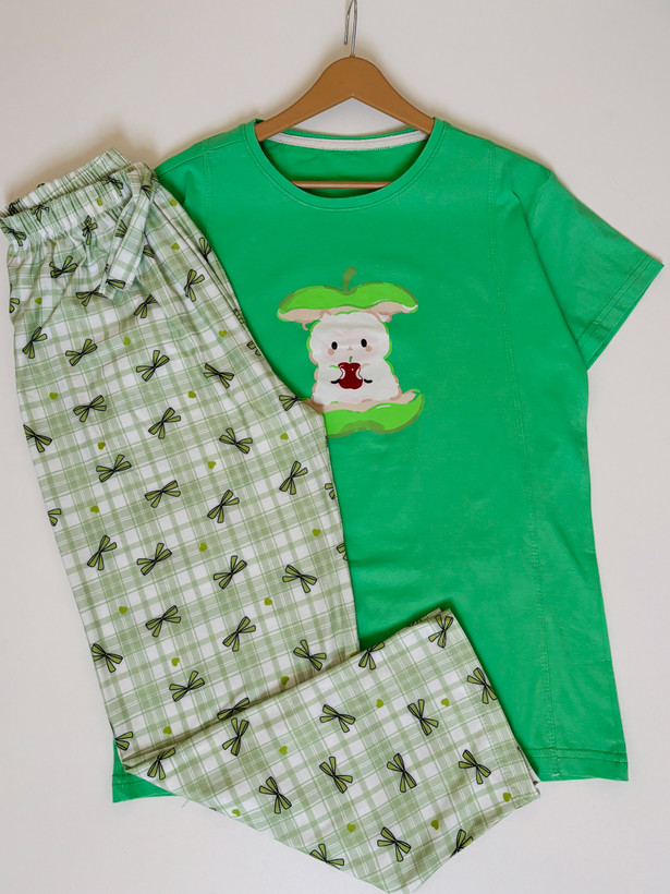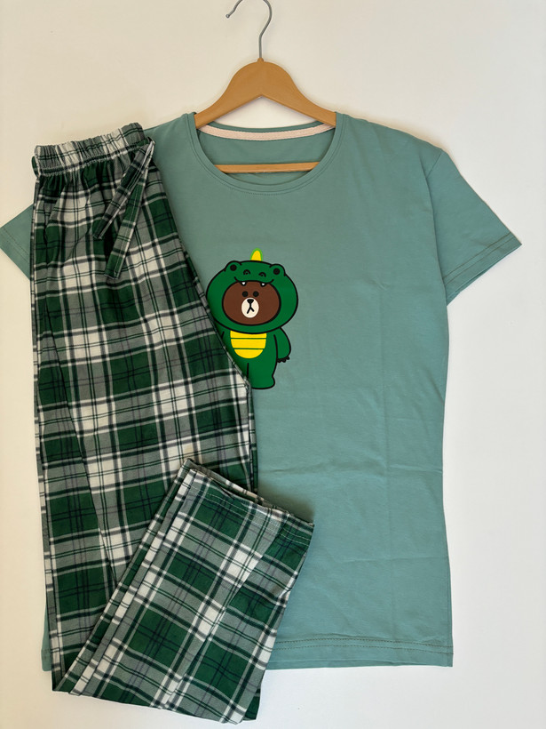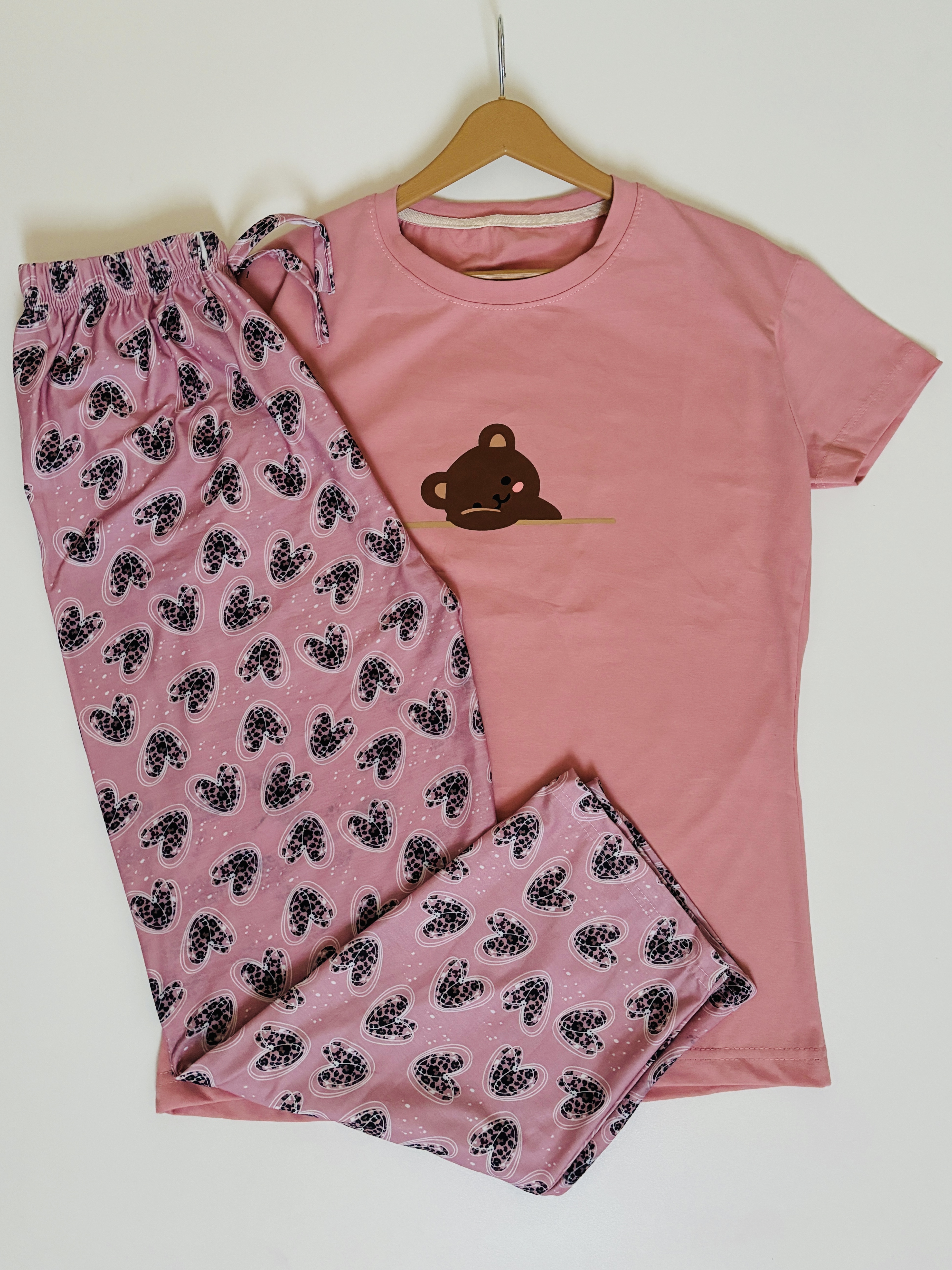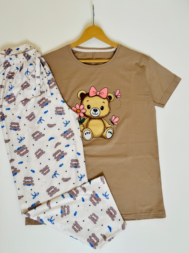 مدل تدی صورتی سایز۳۸/۴۰ است و چون شلوار مورد چاپ دارد قیمت پایین تر است اما چون طرح شلوار شلوغ زیاد مشخص نیست