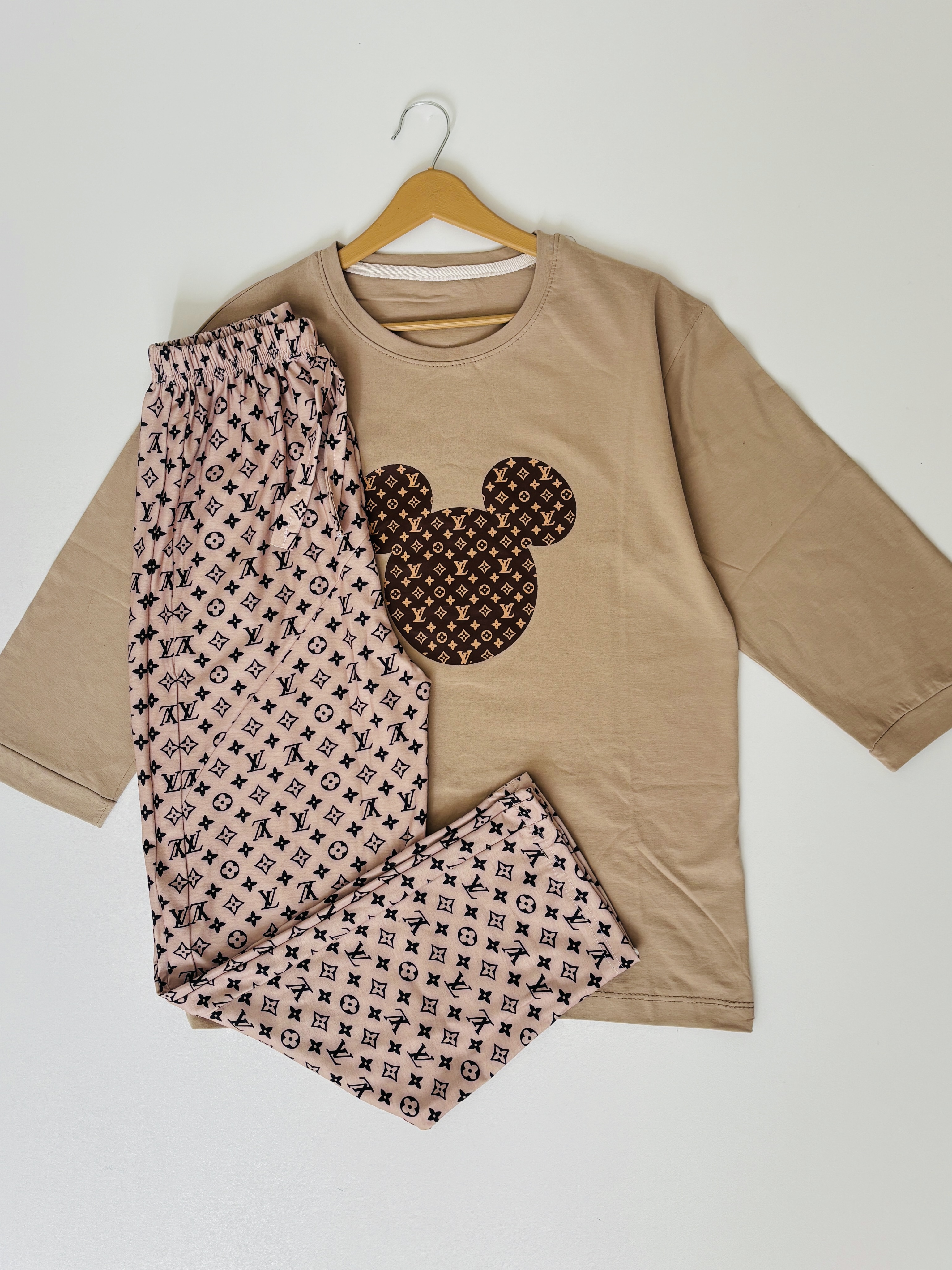 ست تیشرت آستین سه ربع نواردوزی و شلوار🐻😍