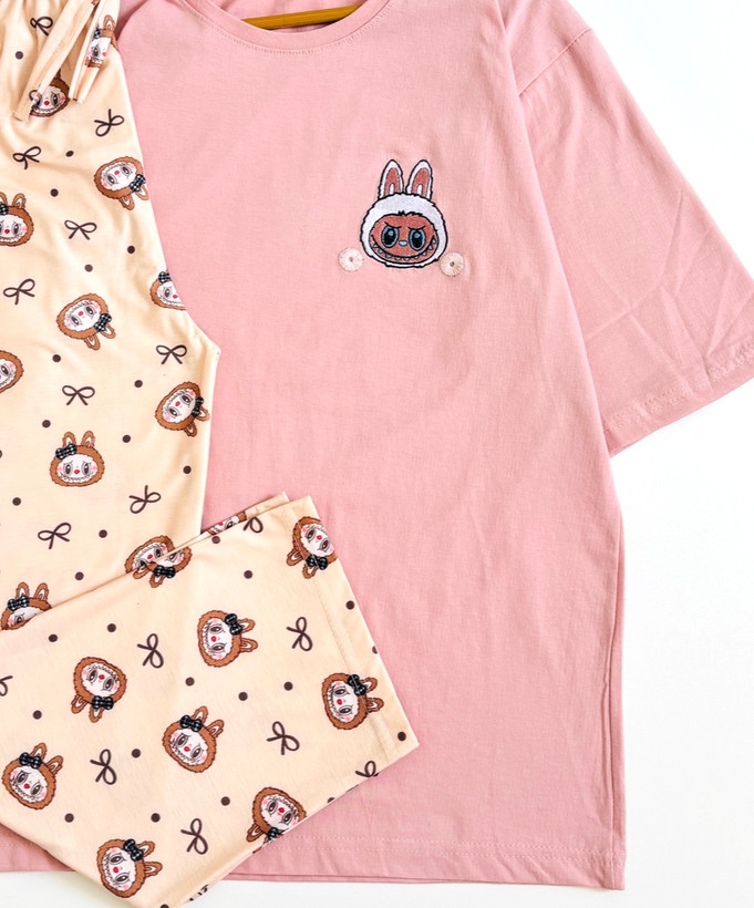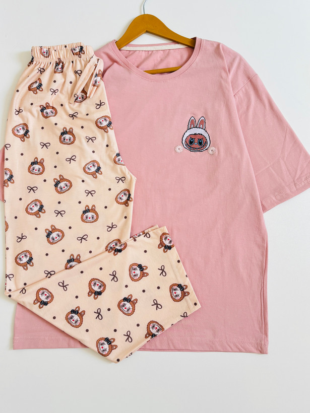 ست تیشرت و شلوار نخ پنبه گرم بالا